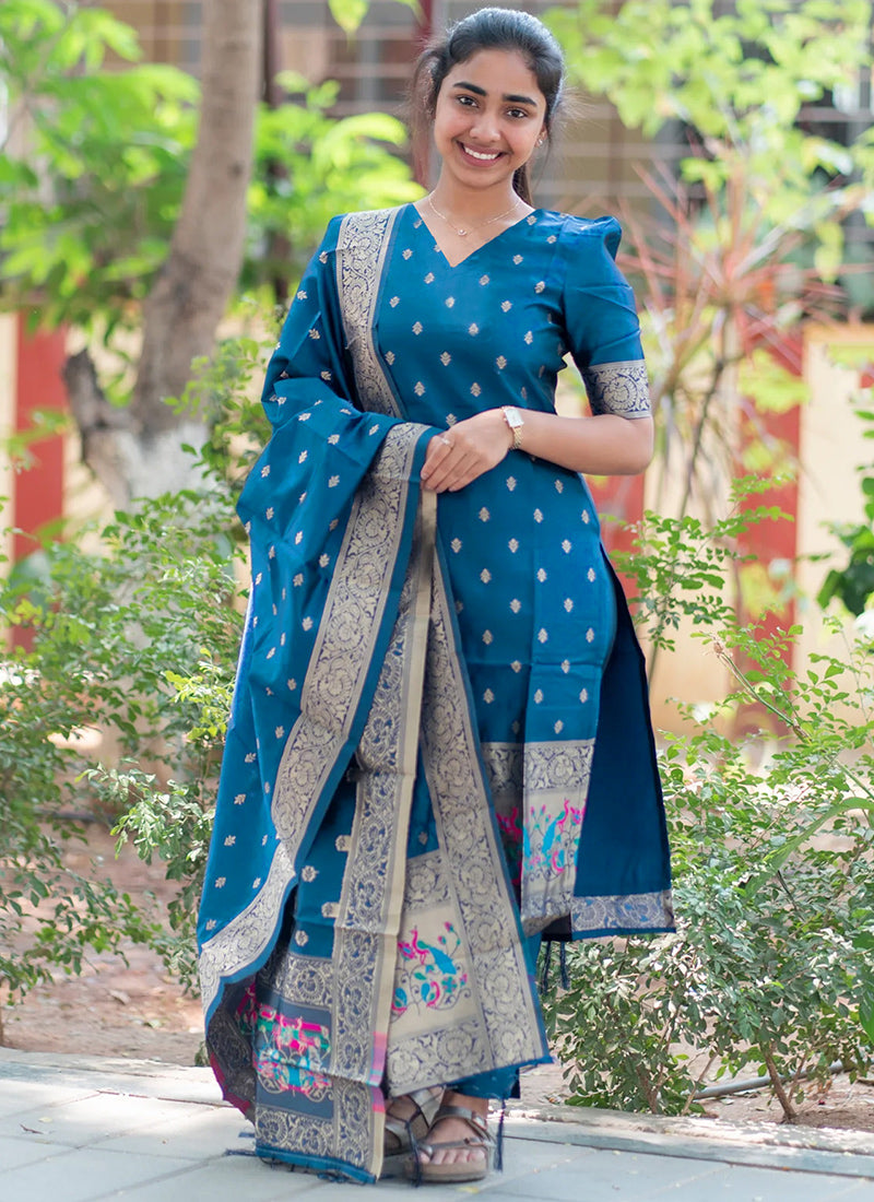 Elevate your festive wardrobe with this exquisite Blue Jacquard Woven Kurta Set 👔✨ Meticulously crafted from premium jacquard fabric, this ensemble showcases intricate woven patterns that exude sophistication and cultural elegance. Perfect for weddings, celebrations, and ceremonial occasions, the rich blue hue complements all skin tones beautifully. The traditional kurta silhouette is expertly tailored for a refined fit, while the coordinated set ensures a polished, cohesive look. Whether attending family gatherings or formal festivities, this versatile piece seamlessly blends heritage craftsmanship with contemporary style 🎉 A timeless investment for your special moments.