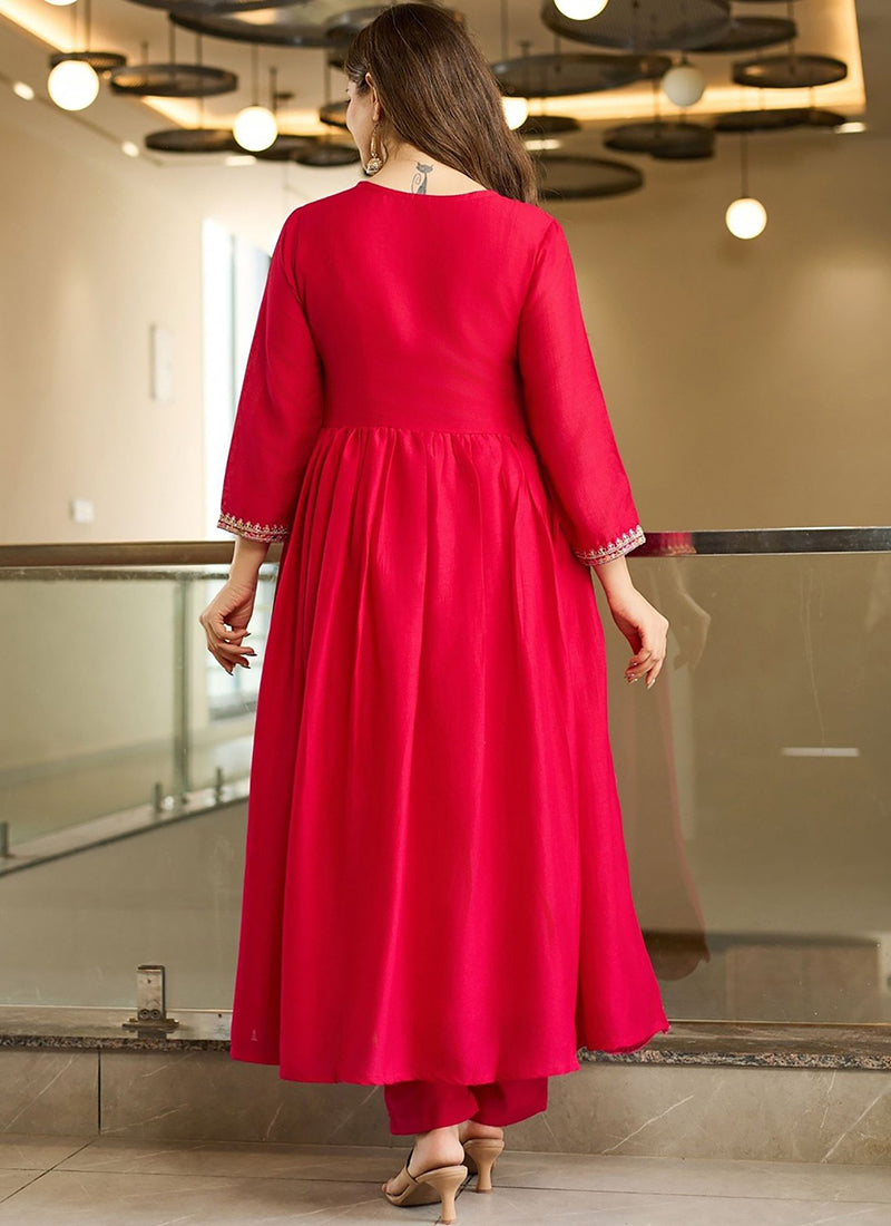 Rani Pink Embroidered Anarkali Style Kurta Set