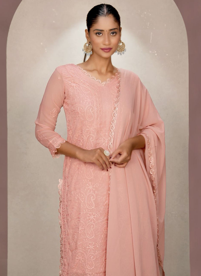Peach Georgette Chikankari Palazzo Style Kurta Set