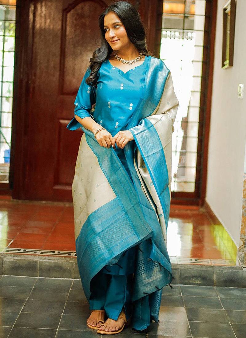 Sky Blue Weaving Jacquard Ceremonial Kurta Set