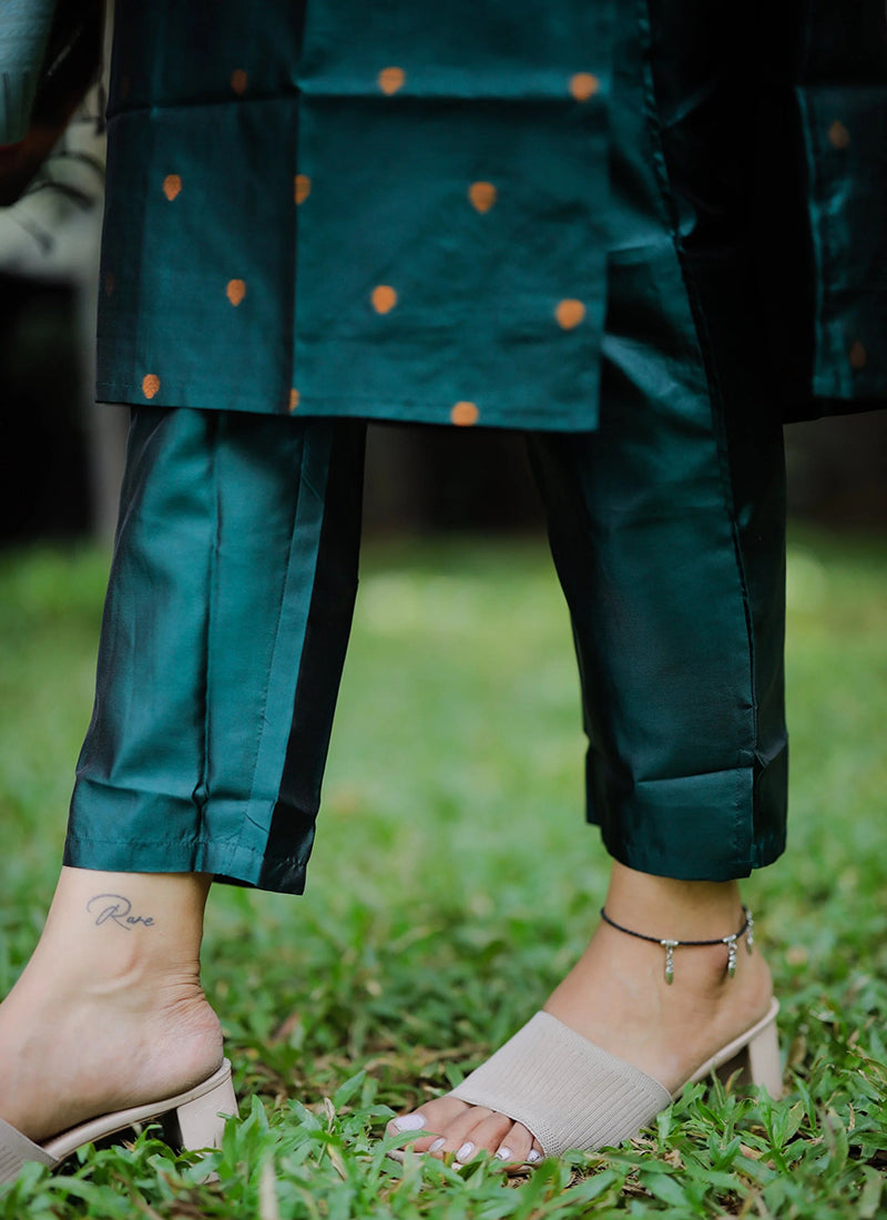 Teal Green Weaving Jacquard Ceremonial Kurta Set